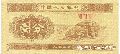 一分錢紙幣上的解放卡車,實際上是蘇聯(lián)山寨美國納威司達(dá)K系列的杰作,在50年代進(jìn)入中國成為了解放卡車。
